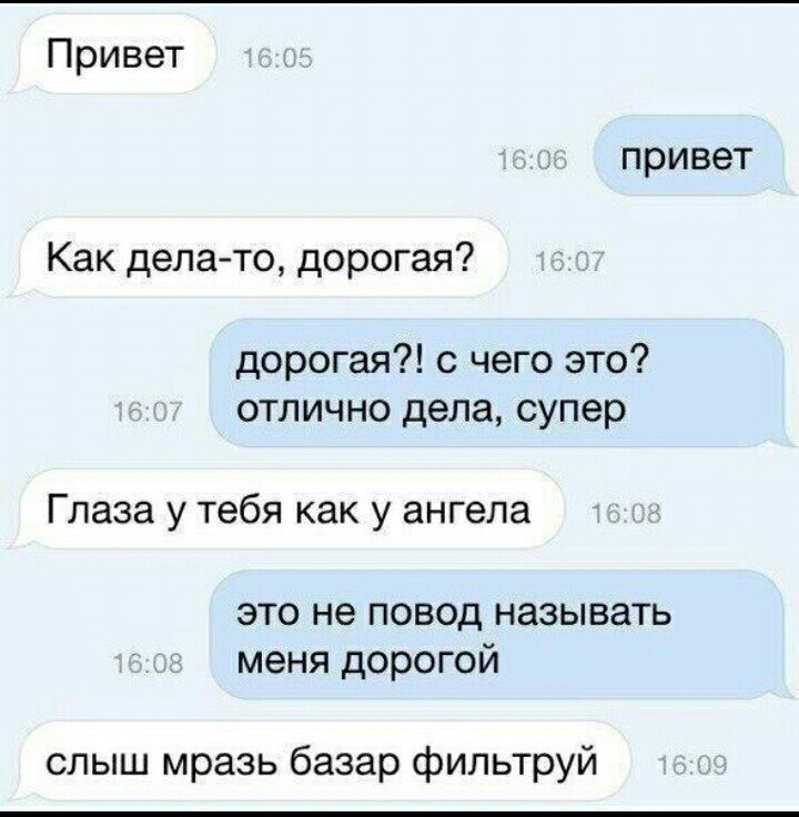Всегда есть один мем, который нас сильно взбесит. Когда вы чувствуете, что у вас закончились темы для разговора и больше нет ничего, тогда можно поговорить о мемах. Вы оба можете начать войну мемов, отвечая на тексты друг друга в мемах.