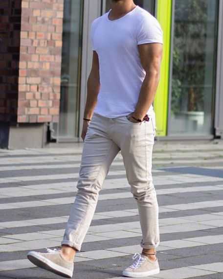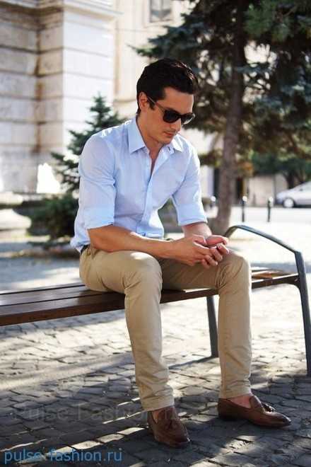 Почему-то мужчины чаще выбирают джинсы в качестве повседневной одежды. Но в жаркий период гораздо комфортнее носить тонкие хлопковые брюки. Они также отлично сочетаются с футболками, туфлями и кедами.