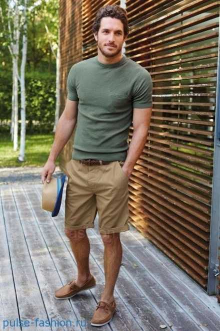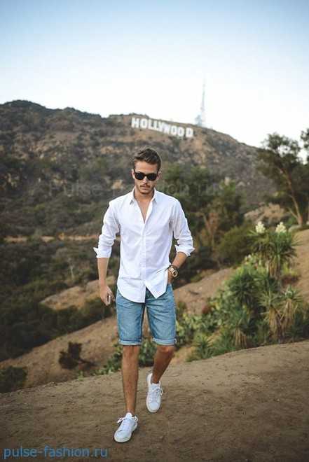 Отлично сочетаются шорты с рубашками, футболками или поло. Главное, правильно подобрать аксессуары и обувь. Кеды, макасины или сандалии — идеальный вариант.