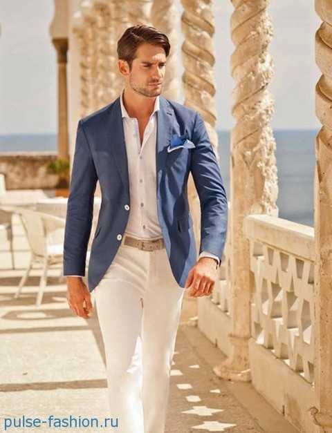 Для деловых мужчин, работа которых обязывает выглядеть по дресс-коду, костюм — это не всегда скучные однотонные пиджак и брюки. Конечно же, летом необходимо выбирать одежду из тонких натуральных тканей. Не бойтесь экспериментировать с цветами. Также, совсем не обязательно покупать костюм. Научитесь сочетать брюки и пиджак разных цветов и ваши образы будут незабываемыми.