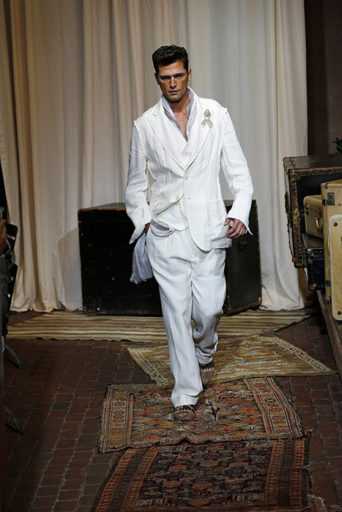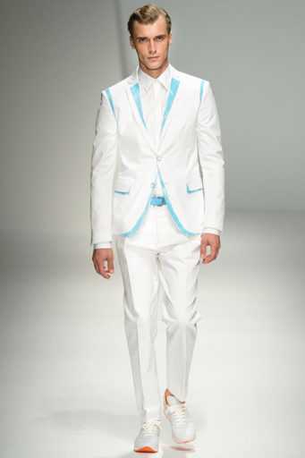 И, наконец, белый цвет. Мужчина в ослепительно белом костюме вызывает две ассоциации – с олигархом или гангстером из американских кинофильмов. Но, как бы там ни было, такая броская вещь является эталоном элегантности, респектабельности и шарма, неслучайно именно белые костюмы летом часто используют в качестве свадебных. На модных показах костюмы из белой ткани продемонстрированы в двух стилях – деловом и свободном.