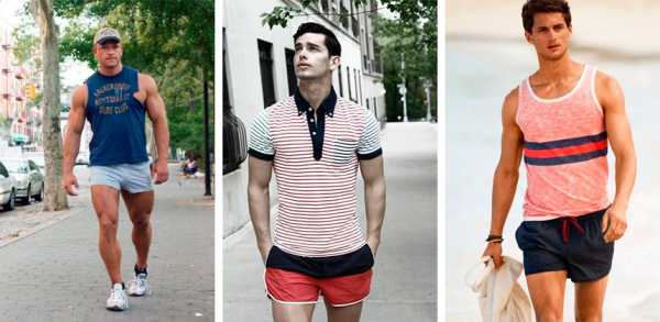 - Накаченный пресс или грудь. Длины шорт до колена, можно чуть ниже.