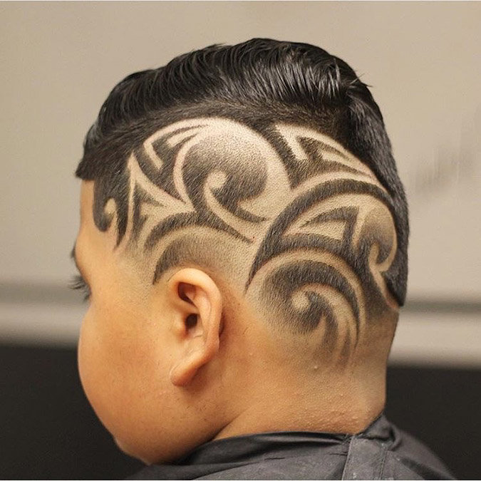 - Выбритые рисунки на юных представителях сильного пола смотрятся довольно стильно. Такая прическа станет гарантией того, что молодой человек понравится всем девчонкам во дворе.
