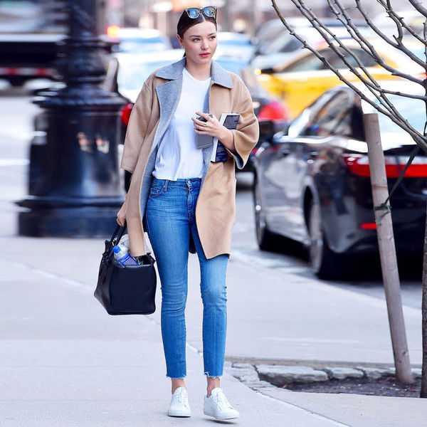 Зауженные джинсы с естественной линией талии хорошо смотрятся на перевернутом треугольнике. Они помогают сбалансировать фигуру и переключить акцент с массивного верха на низ.