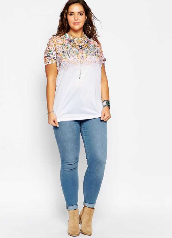 При полной фигуре хорошо смотрится клеш, он уравновесит фигуру, в отличие от скинни джинсов, которые подчеркнут тонкие ноги и выделят талию.