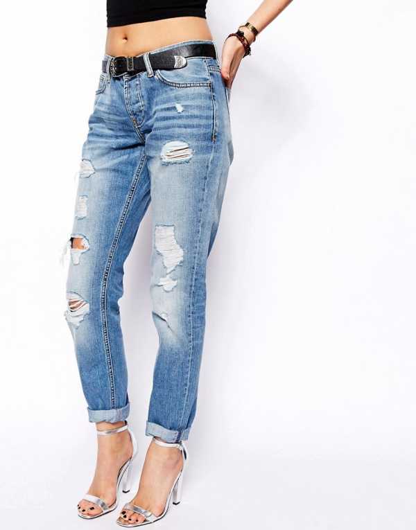 - Boyfriend fit – женский вариант мужских джинс. Покрой свободный чуть зауженный к низу. Часто с небольшими потертостями в качестве декора.