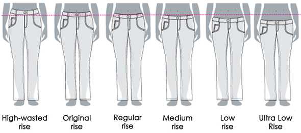 Rise — это непосредственно то, что называется в нашем языке посадкой или высотой талии. Посадка, как мы знаем, может быть заниженной, завышенной или обычной.