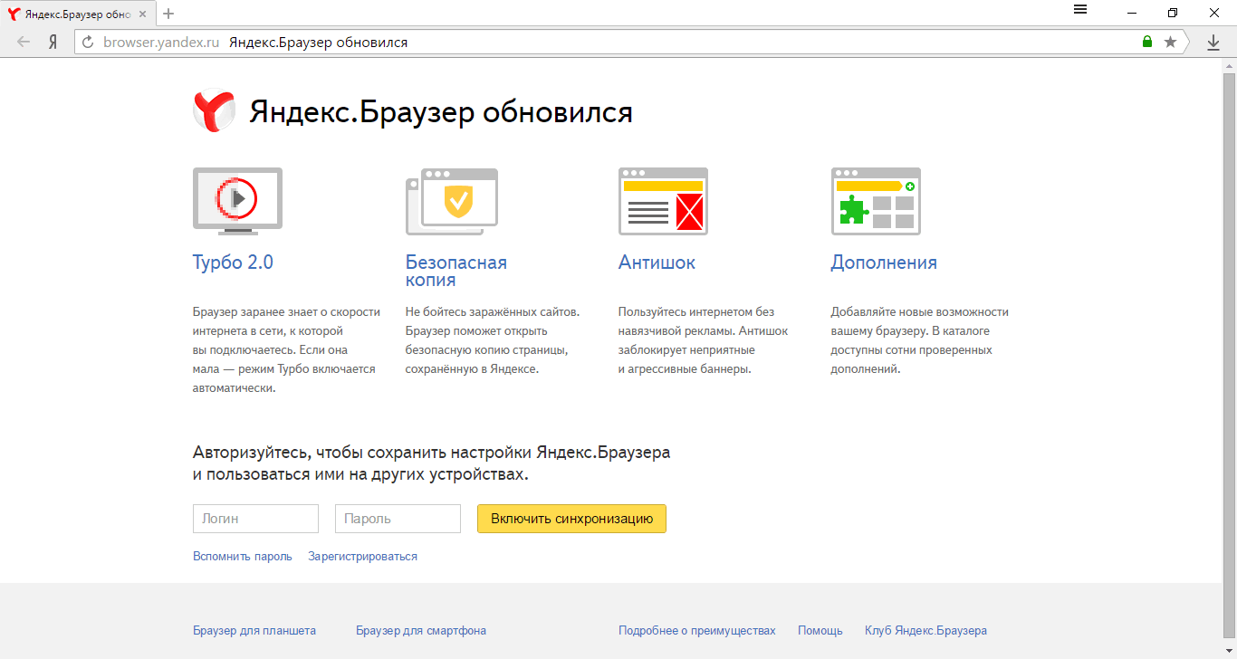 Ну а планшеты можно получить здесь: https://browser.yandex.ua/tablet/main/?banerid=6400000000&zih\u003d1. После установки и настройки программа будет обновлена автоматически, если это предусмотрено пользовательской конфигурацией. Воспользуйтесь этой замечательной возможностью сегодня!