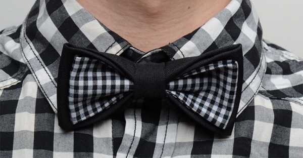 Менее официальной считается черная бабочка в клетку, полосатая или с горошком. Ее можно сочетать с простым костюмом, рубашкой светлого тона без каких-либо принтов.