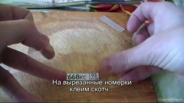 Наклейте скотч на номерок, а все лишнее обрежьте по краям.