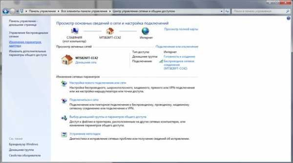 Шаг 6. В открывшейся директории воспользуйтесь ссылкой в левом фрейме «Изменение параметров адаптера».