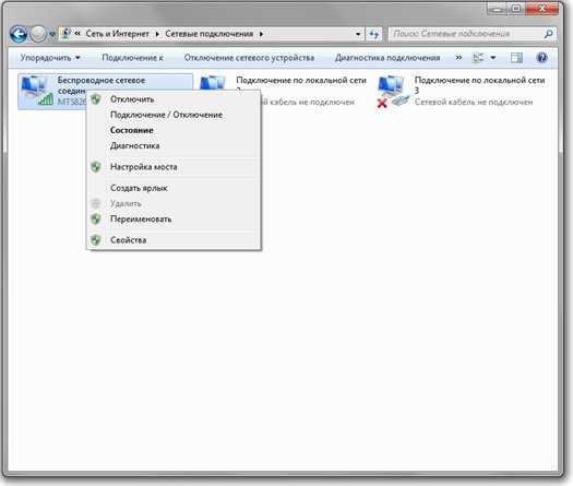 Шаг 7. Изменение настроек сетевого адаптера происходит через его свойства. Вызовите контекстное меню, и воспользуйтесь нужным его пунктом.
