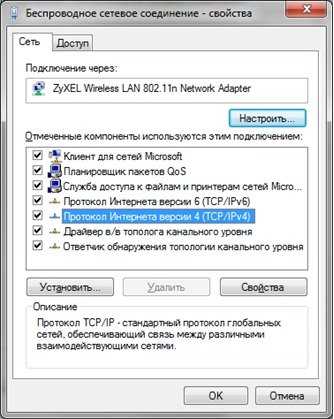 Шаг 8. Нужные Вам настройки хранятся в поддиректории «Протокол интернета версии 4 (TCP/IPv4)». Открыть ее можно двойным щелчком, либо выделив данный пункт и щелкнув по кнопке «Свойства».