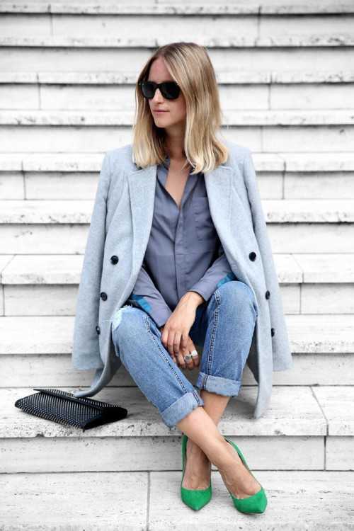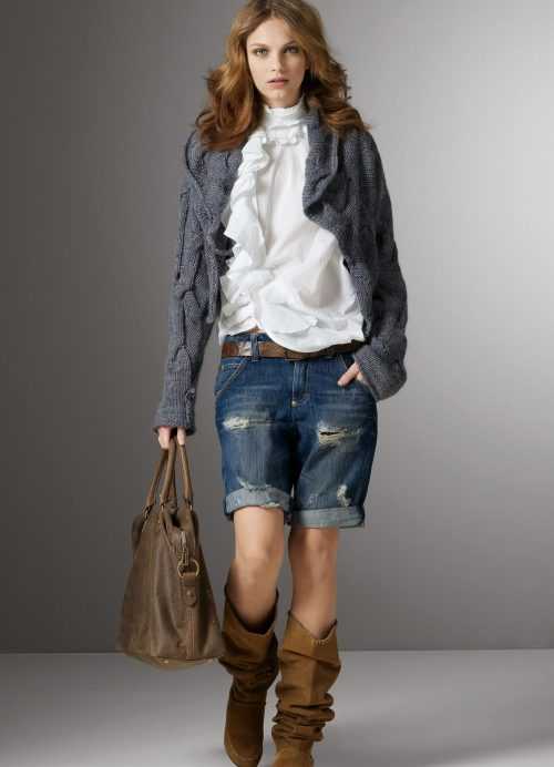 Из верхней одежды подойдут вязаные кардиганы, нестрогие пиджаки, джинсовые курточки, короткие плащи, пальто, жилетки и пуховички.