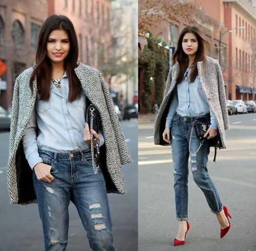 Стиль кэжуал смарт поможет создать для вас прекрасные луки с бомберами, свитшотами, пальто, куртками, кардиганами, дополнив их джинсами черного, белого, голубого, классического синего цвета, рваными и укороченными моделями джинсов, обувью на каблуке и без.