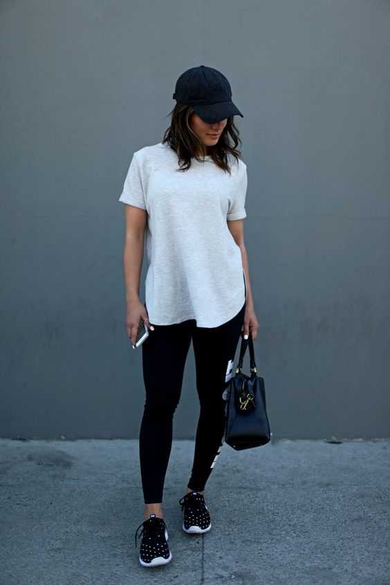 Основу стиля sport casual составляют леггинсы и джинсы, дополненные обувью на низком ходу. В качестве верхней одежды выбирайте куртки из денима и кожи. Также стильным дополнением лука в стиле sport casual станут очки, бейсболка и маленький стильный рюкзак.