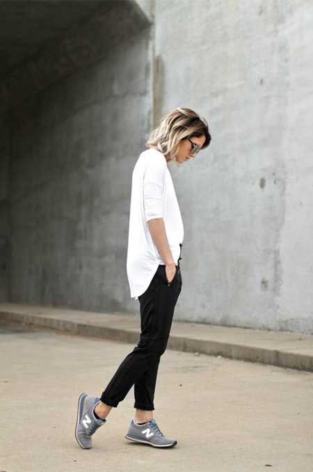 Что касается обуви – то здесь полная свобода выбора от лодочек на шпильке и босоножек и до кроссовок и сникерсов, которые одинаково хорошо выглядят для завершения внешнего облика casual стиля.