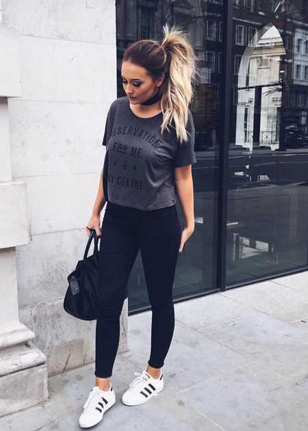 Стиль спорт кэжуал говорит сам за себя – это практичные и удобные вещи, позаимствованные из спортивной одежды. Это могут быть футболки, топы, кеды, кроссовки, толстовки и свитшоты с капюшонами.