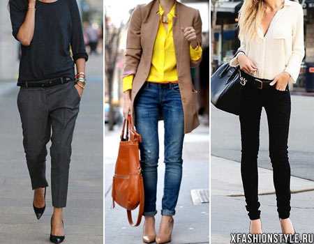 Основным элементом одежды стиля кэжуал (casual) являются старые добрые джинсы. Самые практичные и универсальные. К джинсам лучше подбирать простые блузы, рубашки, футболки, поло и топы. При желании джинсы можно заменить на удобные брюки.