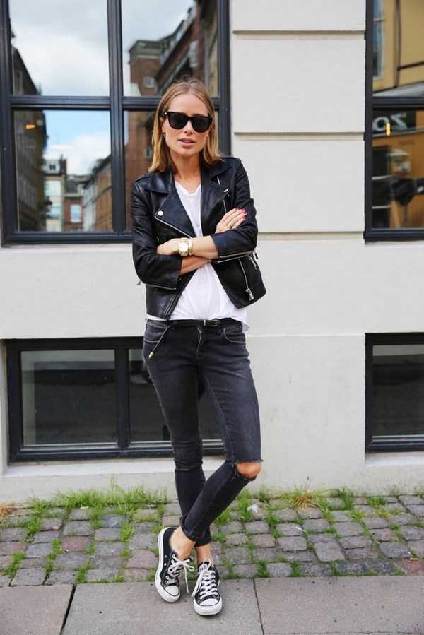 В сочетании со спортивными курточками, толстовками с капюшоном, кожаными косухами, идеально дополняющими спорт кэжуал образы, деним будет выглядеть молодежно и легко.
