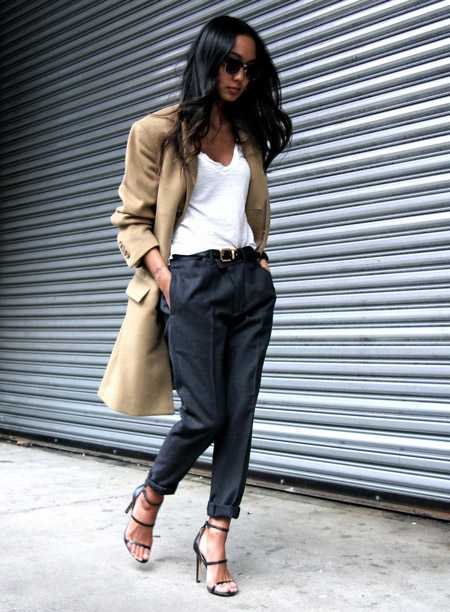 Если вы бизнес леди, вам будет импонировать business casual. В аутфитах этой разновидности присутствуют брючные костюмы свободного и приталенного кроя, легкие рубашки, красивая обувь на каблуке и т.д.