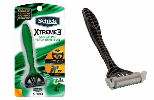 - «Schick Xtreme 3 Sensitive» часто возглавляет рейтинг одноразовых приборов (особенно ценятся они в Японии). Относится модель к классу «люкс» и имеет плавающую головку. 3 острия оснащены смягчающей полоской с алоэ вера.