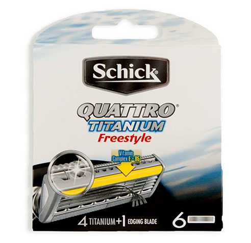 Как было упомянуто выше, компания Schick специализируется на производстве качественных станков и занимает большой сегмент мирового рынка в этой области. Согласно независимому исследованию пользователей, бритва Schick Quattro Titanium признана лучшей, среди аналогичных моделей других торговых марок. Бритва для многократного использования оснащена четырьмя лезвиями, защитной соединительной проволокой, расширенной дезинфицирующей полоской с алоэ вера и вращающейся головкой. Станок идеально подходит как для безопасного и аккуратного ежедневного бритья, так и для избавления от жесткой отросшей щетины. Помимо этого с обратной стороны модель оснащена дополнительным лезвием-триммером, которое выполняет функцию подравнивания усов и волос на висках. Бритвенный станок Schick Quattro Titanium можно по праву отнести к категории премиум-класса.