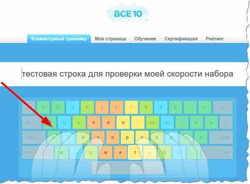 Эта бесплатный онлайн тренажер, который по своему принципу очень похож на программу «Соло». Перед началом обучения, вам предлагается тестовое задание, которое определит скорость вашего набора символов.