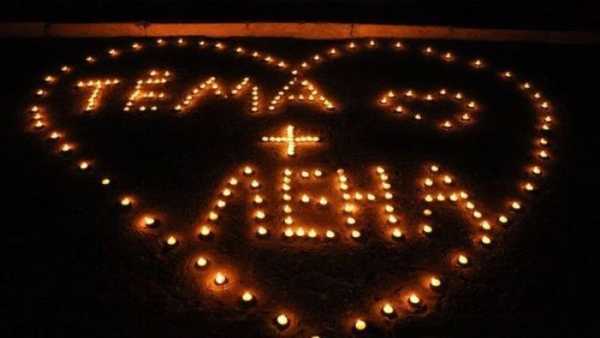 А ночью выложите свое признание при помощи зажженных маленьких ярких свечей, как показано на фото. Эффект будет потрясающий!