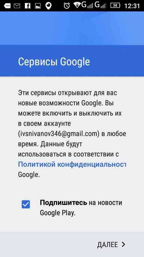 - После окончания проверки система предложит пользователю подписаться на новости от Google, нажав кнопку «Далее».