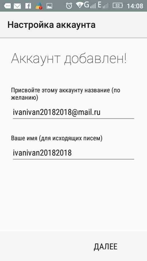 - После проверки настроек необходимо настроить аккаунт, после чего нажать кнопку «Далее».