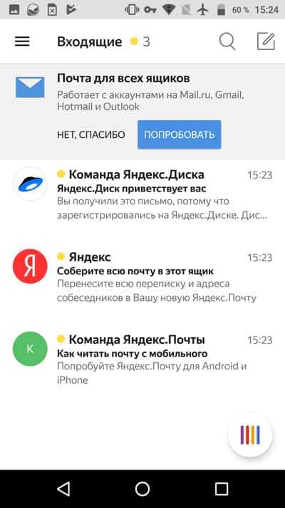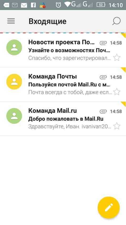 Созданный электронный ящик автоматически привязывается к скачанному приложению, где помимо просмотра и отправки сообщений, доступна привязка электронных ящиков других сервисов.