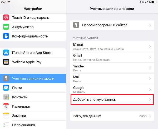 - Заходим в “Настройки > Почта, контакты, календарь > Добавить учетную запись”.