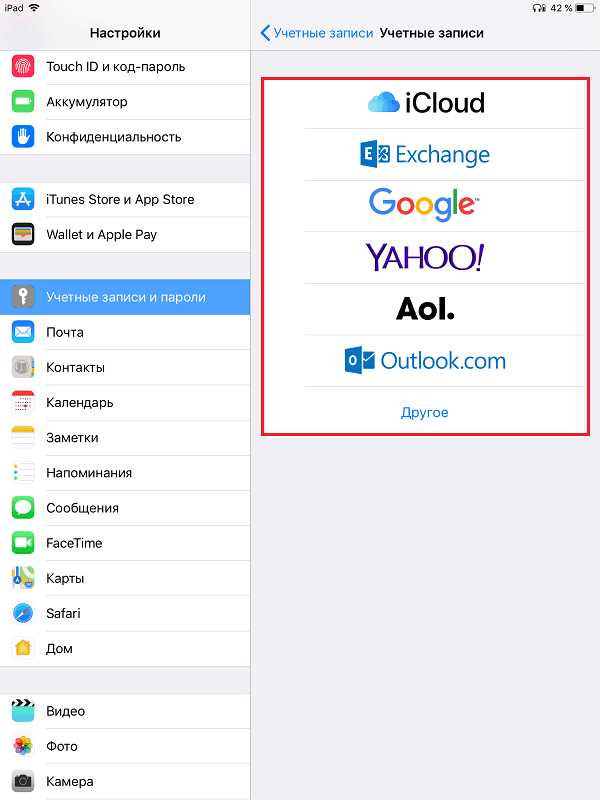 Чтобы подключить к телефону электронную почту других сервисов, необходимо: