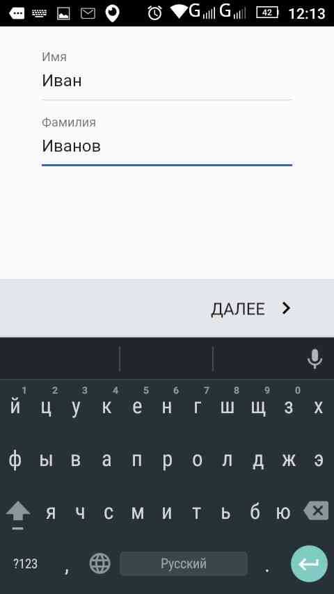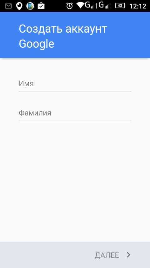 - Ярлык почтового клиента Gmail является стандартным приложением для любого Андроид устройства. Для начала нужно зайти в программу и ввести свои личные данные в соответствующие поля, нажать кнопку «Далее».