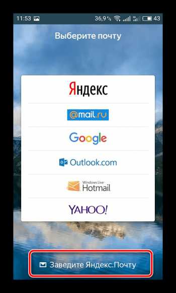 После установки и запуска приложения, выбрать пункт «Завести почту».