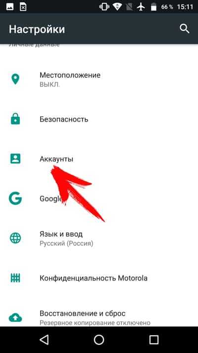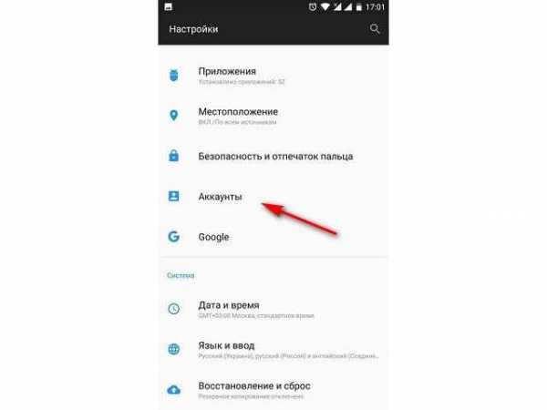 - Открыть настройки мобильного устройства и перейти в раздел «Аккаунты».