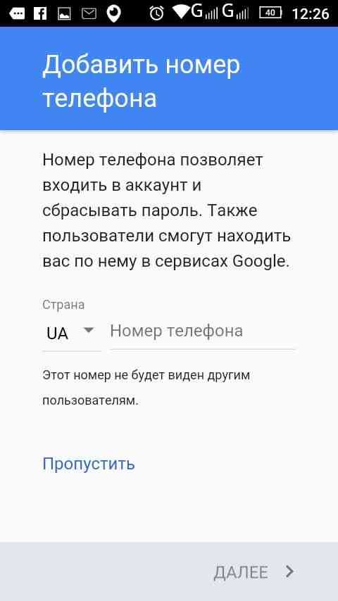 Этот шаг можно и пропустить, но делать это не рекомендуется, так как в случае утери доступа к аккаунту номер телефона наиболее простой, быстрый и надежный способ восстановить его.