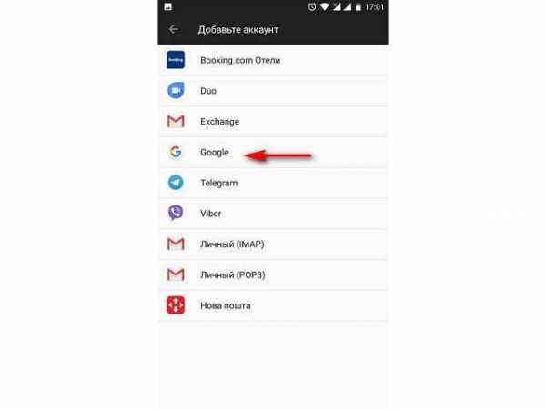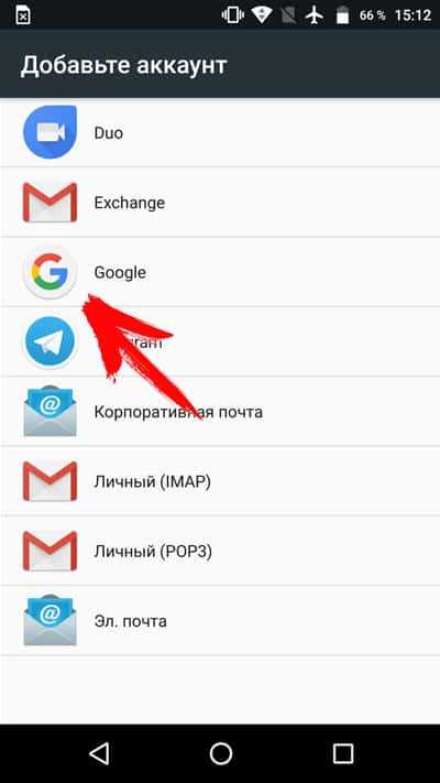 Далее выбрать пункт «Google».