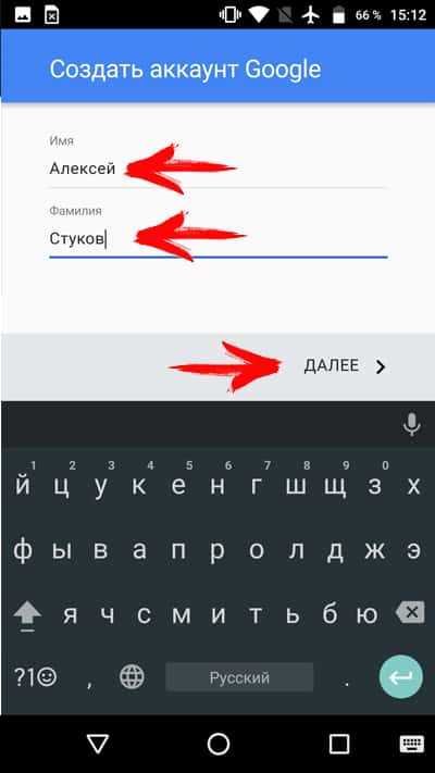 Затем требуется ввести Имя и Фамилию. Вводить настоящие данные необязательно, подойдет и псевдоним.