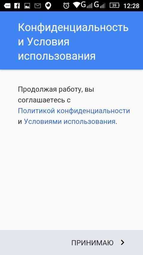 Сервис предложит ознакомиться с «Конфиденциальностью и условиями использования», что необходимо принять. Для появления кнопки, необходимо пролистать страницу вниз.