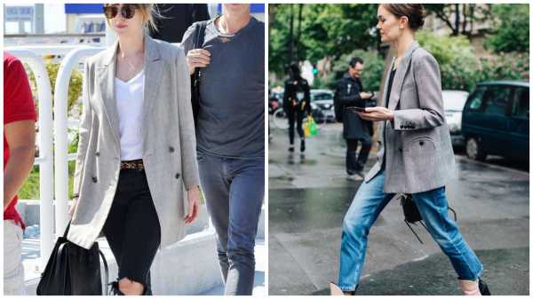 Для создания неформального образа на каждый день пиджак стоит надеть с любимыми джинсами. Объемный жакет будет выигрышно смотреться со скинни, а приталенная модель подойдет к бойфрендам. Поклонницы джинсов прямого кроя могут смело выбирать легкие пиджаки оверсайзы, придавая своему образу легкую небрежность. Единственное табу в сочетании длинных жакетов и джинсов касается полных девушек. Им следует отказаться от комбинации удлиненного пиджака и джинсов бэгги с чересчур широкими штанинами.