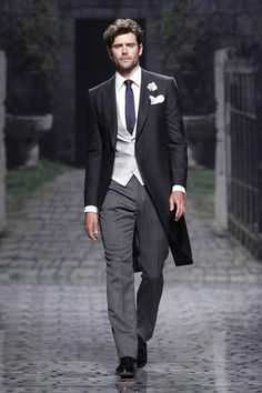 Это главная одежда для вечерних парадных и особо торжественных мероприятий. Передняя сторона похожа на мужской пиджак, приталенный и имеющий довольно короткие (до талии) жесткие полы. Сзади полы фрака длинные, заканчиваются приблизительно на уровне колен. Эти фалды еще называют «ласточкин хвост», который отличает фрак от всех других видов торжественной мужской одежды — смокингов и пиджаков. Главный цвет — черный, сегодня он наиболее приемлемый и популярный. Иногда, гораздо реже — темно-синий, который еще называют «цветом ночи». Носят его только с белой сорочкой, обязательно хорошо накрахмаленной, с жестким воротником, загнутыми углами.