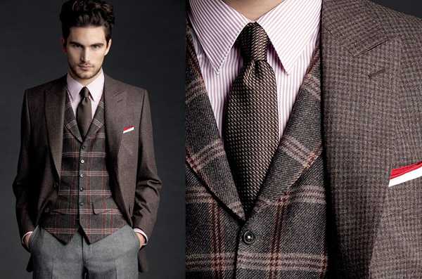 Привычные геометрические принты в виде полосок и клеток обогащаются абстракциями разного калибра. Рисунок «куриная лапка», узор из ромбов – свежее и оригинальное предложение для мужчин.