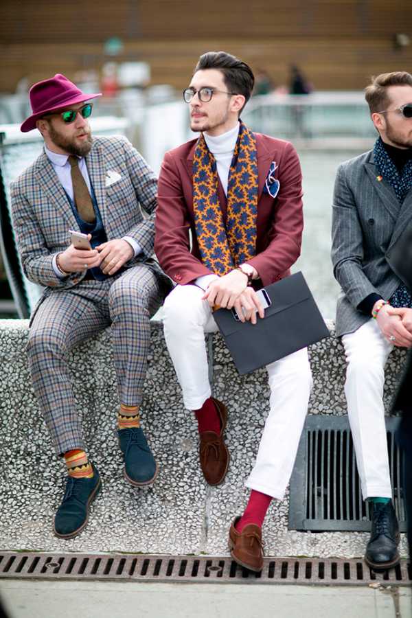 А теперь об обещанном интересном сюрпризе. Мы решили в этот раз не обременять вас трендовыми фото с подиумов на тему «Осень-Зима 2016/2017». Как уже говорилось выше – пиджак, как фундаментальная основа мужского гардероба, фигурирует почти во всех коллекциях. Поэтому самым практичным, полезным и действенным способом осветить этот предмет гардероба будет стритстайл. Оттенки, комбинации, аксессуары, обувь и даже носки – как всё это сочетается с пиджаком, покажет уличная выставка мужской одежды Pitti Uomo во Флоренции! Более яркого и популярного праздника пиджака не найти! Смотрим!