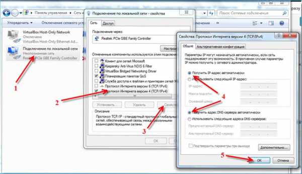 Для настройки интернета необходимо проверить автоматическое получение Ip-адреса и dns-сервера. Находятся эти настройки по пути Пуск>Панель управления>Управление сетями и общим доступом>Свойства подключения>Свойства интернет протокола версии 4.