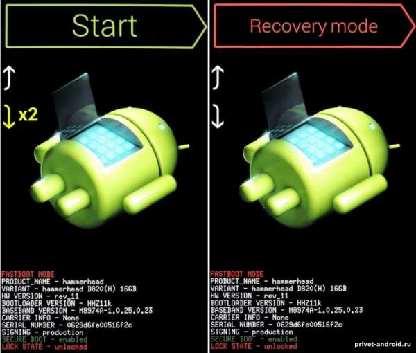 - Как показано выше, на устройствах Google nexus и HTC,там два меню, в выше указанном необходимо спускать и выбирать режим с названием «Recovery Mode«. Может быть у вас и во все не чего не будет, так как некоторые производители отключают возможность залесть в меню, его надоили прошивать или вшивать в устройство. Такое обычно случается у Huawei and Sony. Приходится разблокировать загрузчики и вшивать режим рекавери.