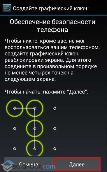 - Система предложит вам нарисовать глиф и затем повторить рисунок для подтверждения. Ваш телефон будет защищен, главное в этом деле — не забыть рисунок.