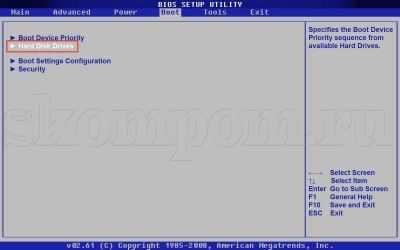 В категории boot нас интересуют две строки Device Priority, Hard Disk Drives. (Приоритетная, с чего будет загружаться компьютер, принудительный выбор загрузчика).