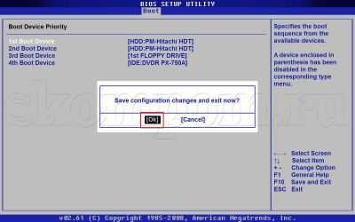 В разделе загрузки (Boot) ищем пункт Boot Device Priority и смотрим на строку 1-st Boot Device. Нажатием клавиши PgDn выбираем искомое устройство, после чего осуществляем выход с сохранением параметров (как правило, делается это при помощи клавиши F10). Далее следует перезагрузка, а установка стартует автоматически.